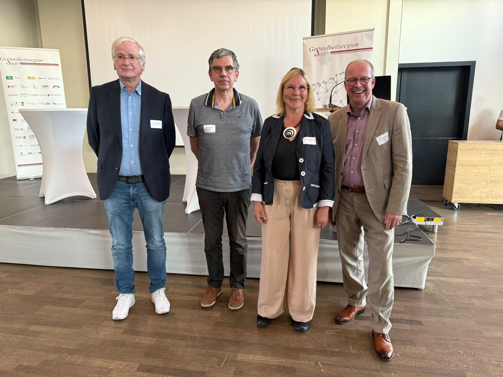Am 29.01.25 diskutierten (von rechts nach links) Axel Mittelbach (Gesundheitsregion Saar e.V.), Stefan Groh (Leiter der Landesgeschäftsstelle der TK Saarland), Carsten Wohlfeil (Geschäftsführer Apothekerkammer Saarland), Sabine Schlüter (Apothekerin) und Dr. Harald Böttge (Gesundheitszentrum Ensheim) insbesondere über die wirtschaftliche Situation der Apotheken.