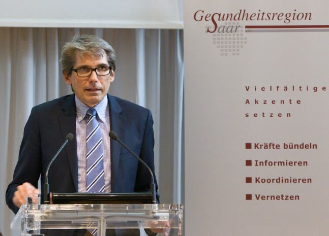 Einen Überblick über die Bedeutung der Gesundheitswirtschaft für das Saarland gab Andreas Storm, Minister für Soziales, Gesundheit, Frauen und Familien. Er verwies auf die 60.000 Arbeitsplätze im Gesundheitsbereich. Die Tendenz sei steigend, so Minister Storm: "Wenn es einen Wachstumsmarkt der Zukunft gibt, dann ist es der Gesundheits- und Pflegebereich". Hier gäbe es vor allem im Saarland große Herausforderungen, denn das Saarland sei das am stärksten vom demographischen Wandel betroffene alte Bundesland. Ende des Jahrzehnts könnte die Einwohnerzahl im Saarland auf 950.000 sinken, mit den entsprechenden Folgen für die Altersstruktur.