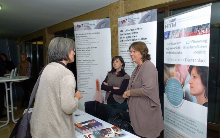 Beim gemeinsamen Gang über die parallel laufende Ausstellung von Mitgliedsinstitutionen der Gesundheitsregion Saar e.V. konnten sich die Referenten und das Publikum von der Leistungsfähigkeit und Vielseitigkeit der saarländischen Gesundheitswirtschaft ein Bild machen.