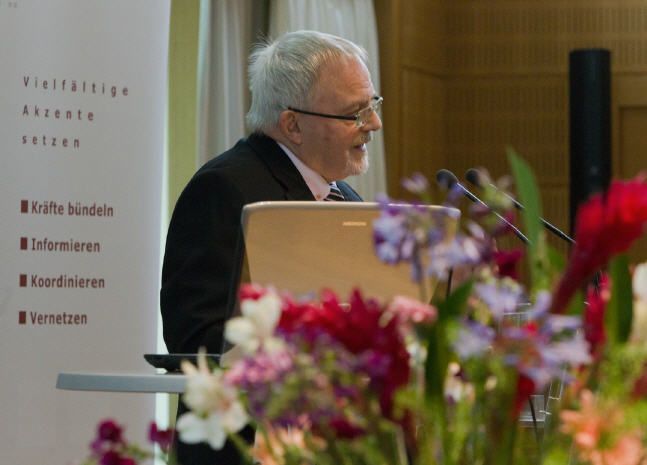 Der bekannte Mediziner und Publizist Prof. Dr. Dietrich H.W. Grönemeyer thematisierte in seinem Vortrag die Möglichkeiten und den Einfluss medizinischer Innovationen auf das Wohl der Patienten. Grönemeyer, nach dessen Definition die Medizin zu den Kulturgütern gehört, betonte vor allem die Chancen der medizinischen Hochtechnologie durch das Bemühen, medizinische Geräte immer kleiner zu machen, so die Bereiche Optik und Laser, Werkstoffe, Gerätebau oder Nanotechnologie. Er sieht aber auch die Notwendigkeit, High-Tech Medizin mit Verfahren der Naturheilkunde zu kombinieren.