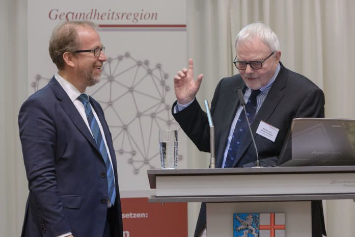 Nach dem Grußwort der Landesregierung durch Herrn Staatssekretär Jürgen Lennartz, Bevollmächtigter des Saarlandes beim Bund begrüßte Werner Schreiber, Minister a.D., Vorsitzender der Gesundheitsregion Saar e.V. die anwesenden Gäste und führte in das Thema des heutigen Abends ein.