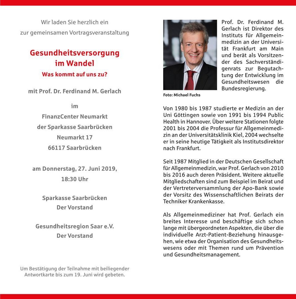 Vortrag durch Herrn Prof. Dr. med. Ferdinand M. Gerlach im Finanz Center Neumarkt der Sparkasse Saarbrücken