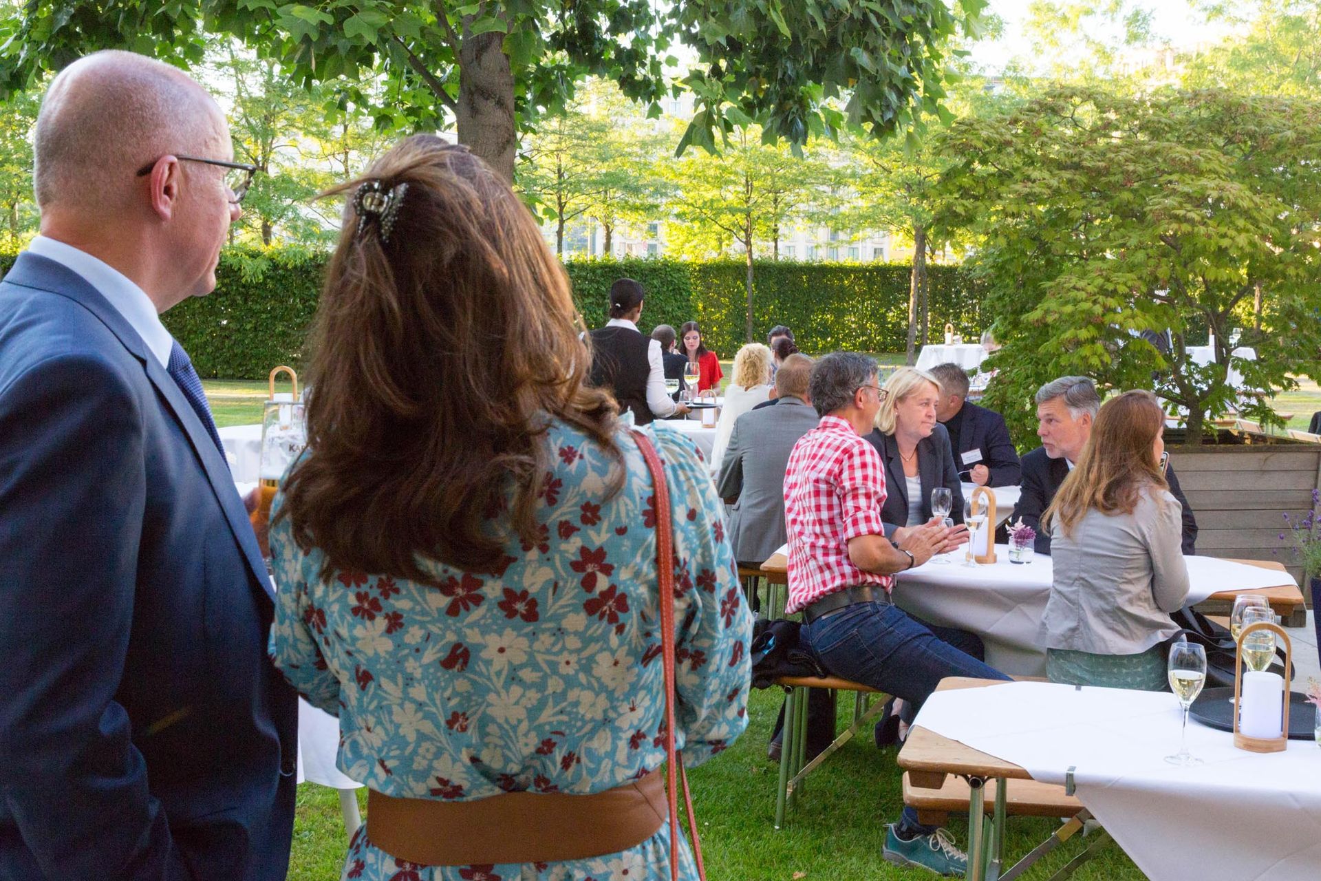 Der Empfang im Zeichen der Kommunikation und Geselligkeit endete mit einem Buffet im Garten der Saarländischen Landesvertretung. Der laue Sommerabend lud zu einem langen Verweilen und intensivem Networking ein.