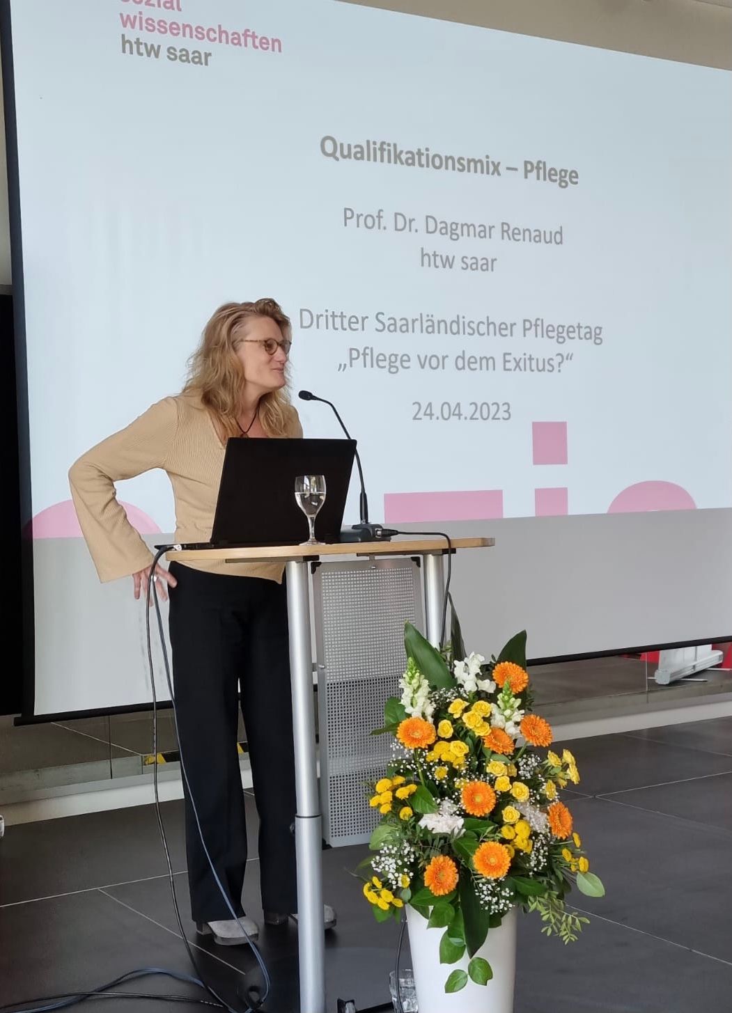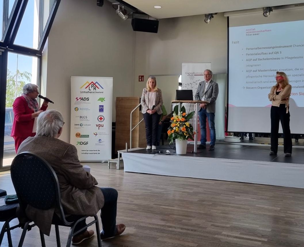 Aber welchen Qualifikationsmix der Pflegekräfte brauchen Krankenhäuser, stationäre Pflegeeinrichtungen und ambulante Pflegedienste? Frau Prof. Dr. Dagmar Renaud von der htw saar stützte sich auf umfangreiche Studien, die aufzeigen, welche unterschiedlichen Qualifikationen im Pflegebereich in welchem Umfang gebraucht werden und wie sich die verschiedenen Qualifikationsniveaus in den Einrichtungen verteilen müssten. Dazu gebe es auch schon vielversprechende Modellprojekte.