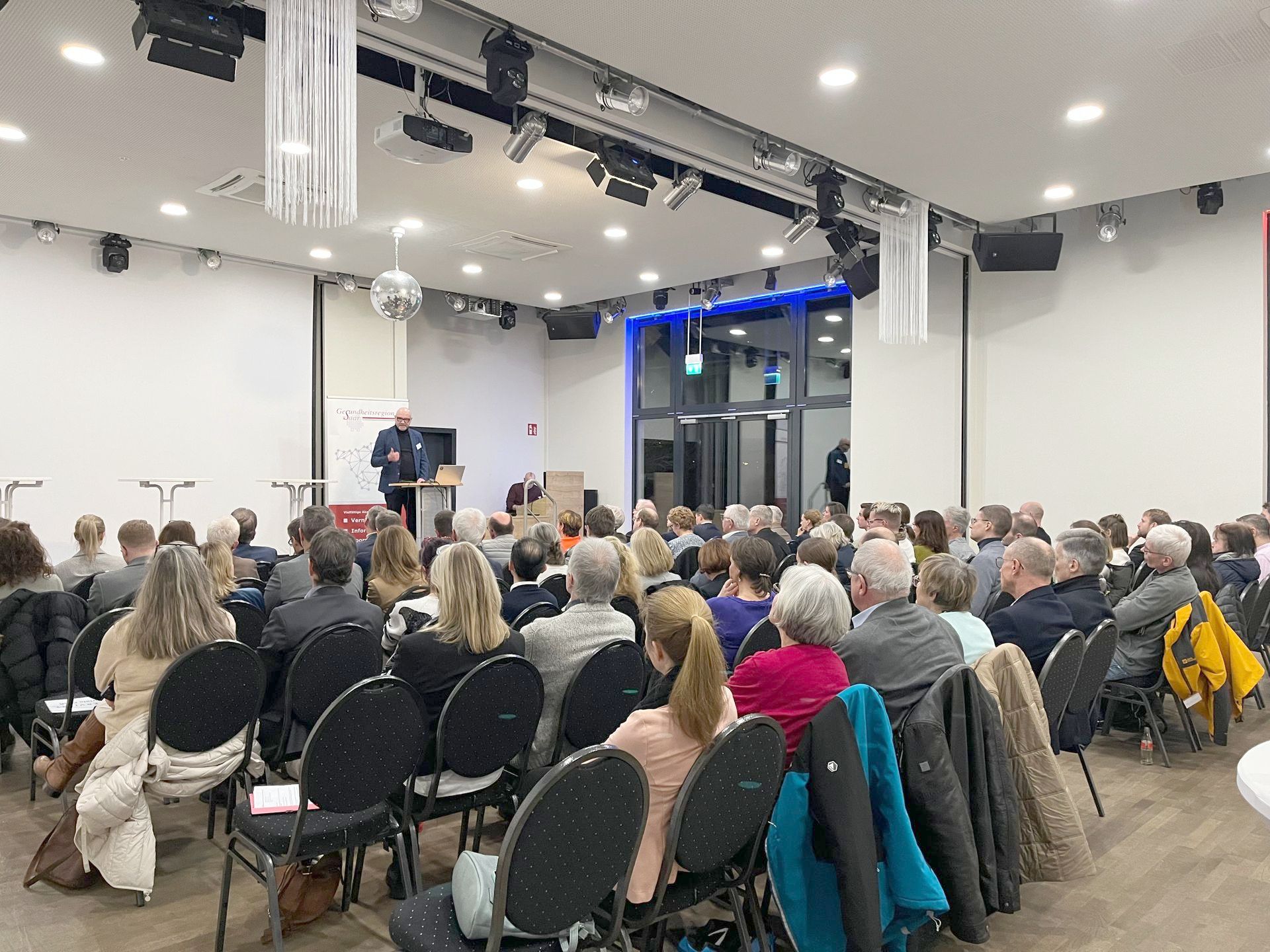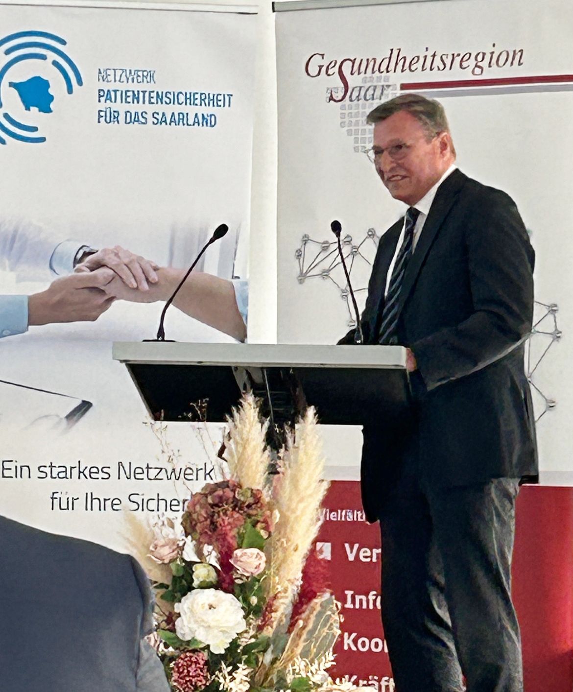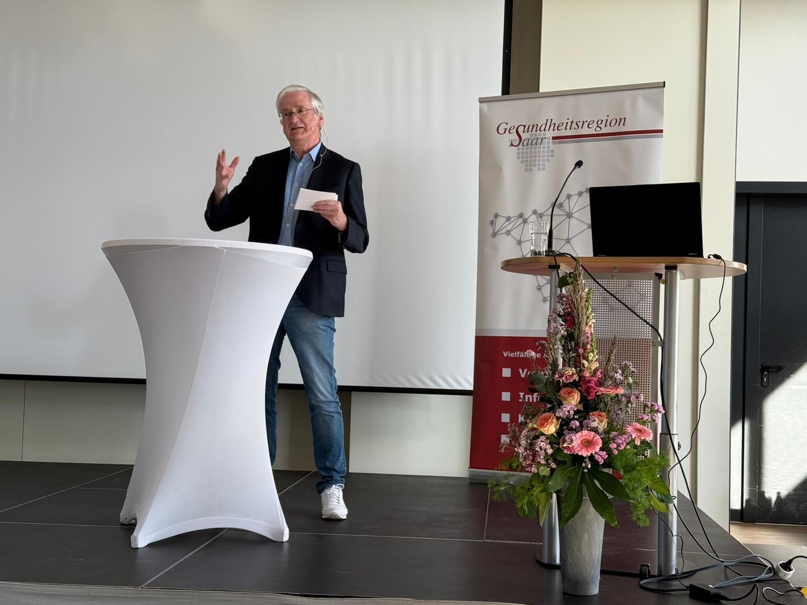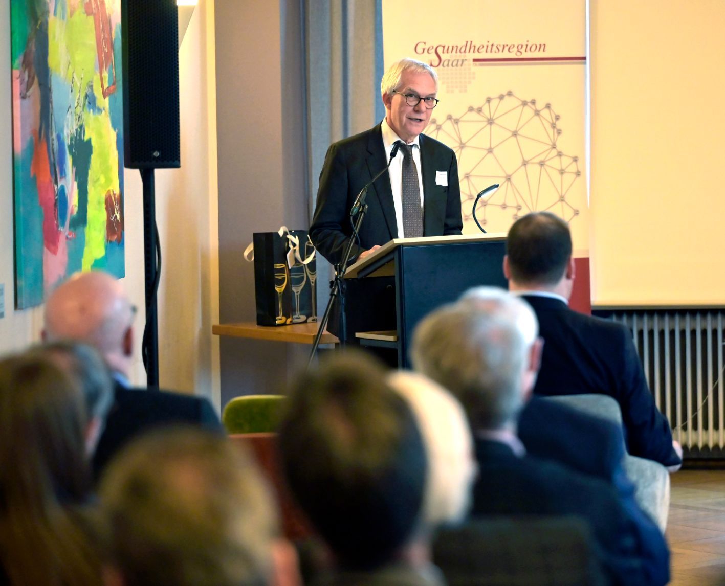 Der saarländische Gesundheitsminister Dr. Magnus Jung gab in seinem Grußwort dann auch eine kurzen Aufriss über die anstehenden Veränderungen insbesondere im Krankenhausbereich. Im Saarland sei man hier auf einem guten Weg, Doppelstrukturen abzubauen und die Krankenhauslandschaft qualitativ und wirtschaftlich besser aufzustellen. Er setze darauf, dass aus dem neuen Sondervermögen auch ein Teil in die Stabilisierung der Kliniken im Saarland fließe. Außerdem solle im Frühsommer ein großer Kongress zur Digitalisierung des Gesundheitswesens im Saarland stattfinden.